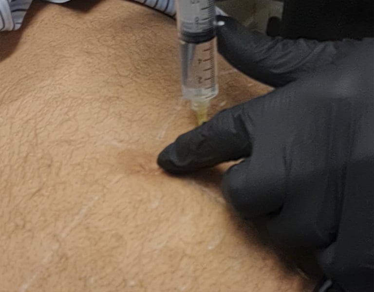 A aplicação é feita através múltiplas punções nas camadas intradérmica ou subcutânea de uma mescla (mistura de substâncias).